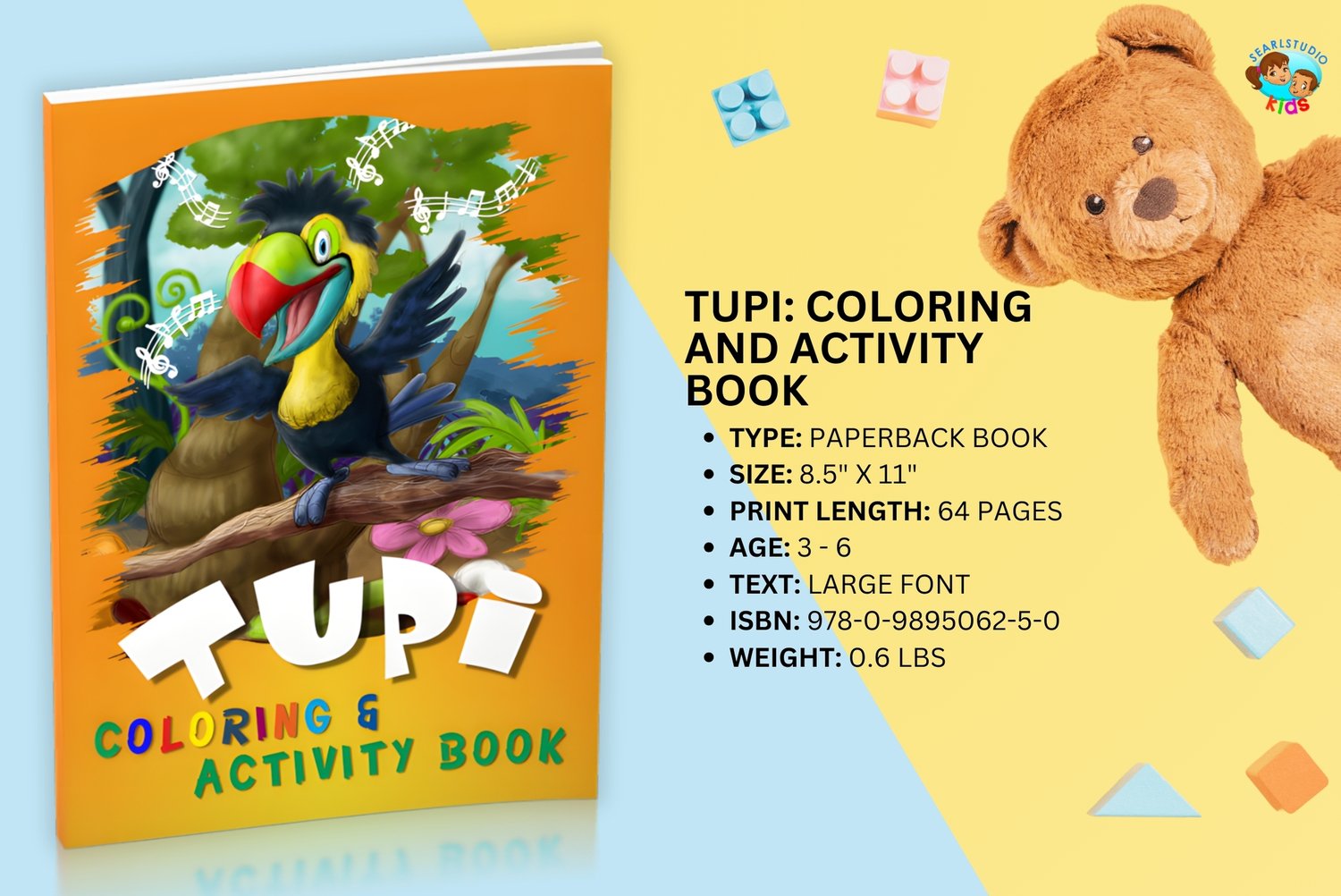 Based on the beautifully illustrated board book "Tupi Finds His Tune" by Stephan Earl, this coloring and activity version features over 60 pages of fun music and rainforest related coloring, puzzles and activities. It's the perfect compliment to the original board book, and the perfect gift for any child who loves music.