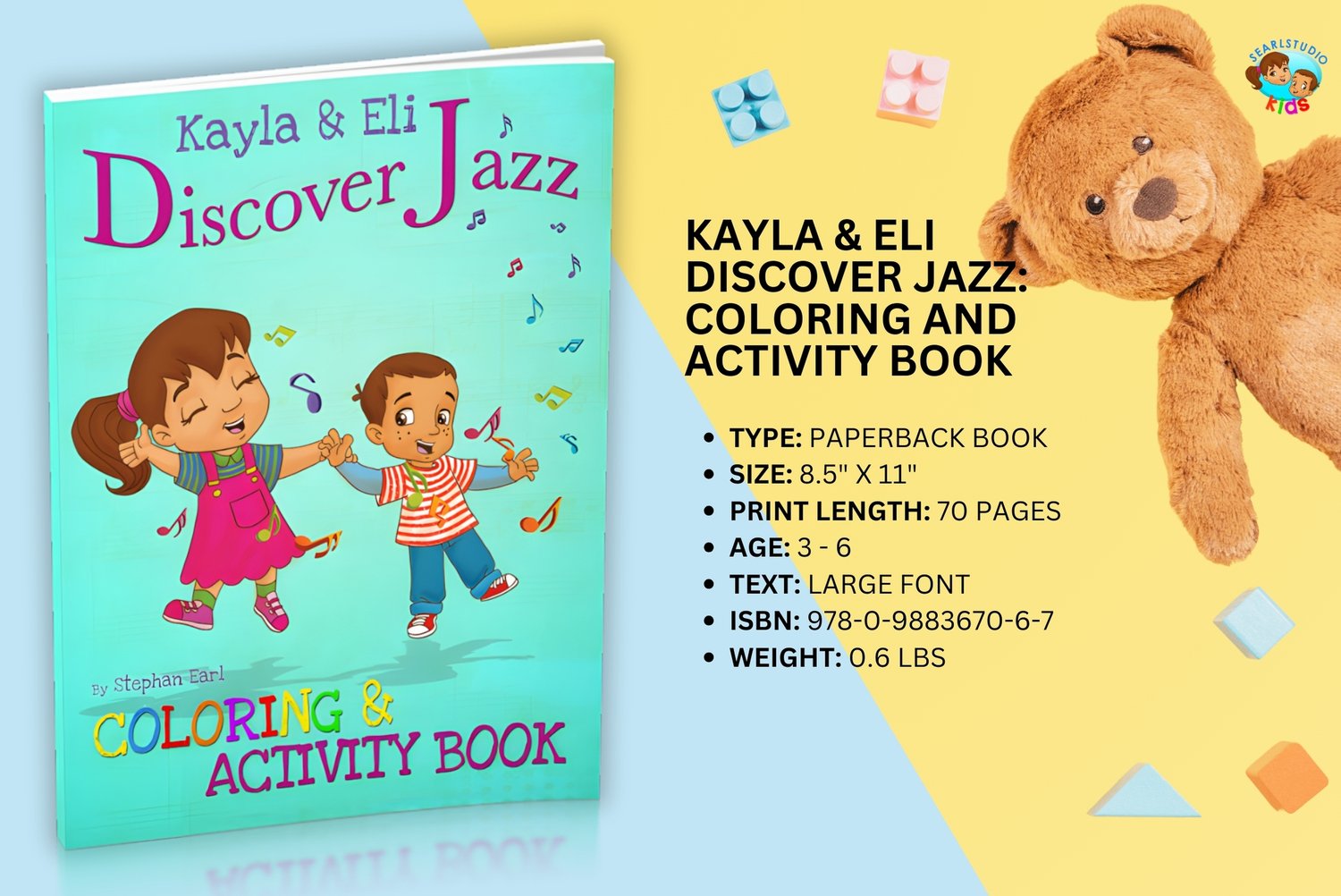 Join the creative fun with Kayla & Eli Discover Jazz: Coloring and Activity Book. Based on the beautifully illustrated book Kayla & Eli Discover Jazz by Stephan Earl, this coloring and activity version features over 60 pages of music and jazz related coloring, puzzles and activities. It's the perfect compliment to the original picture book, and the perfect gift for any child who loves music… and what child doesn't love music!