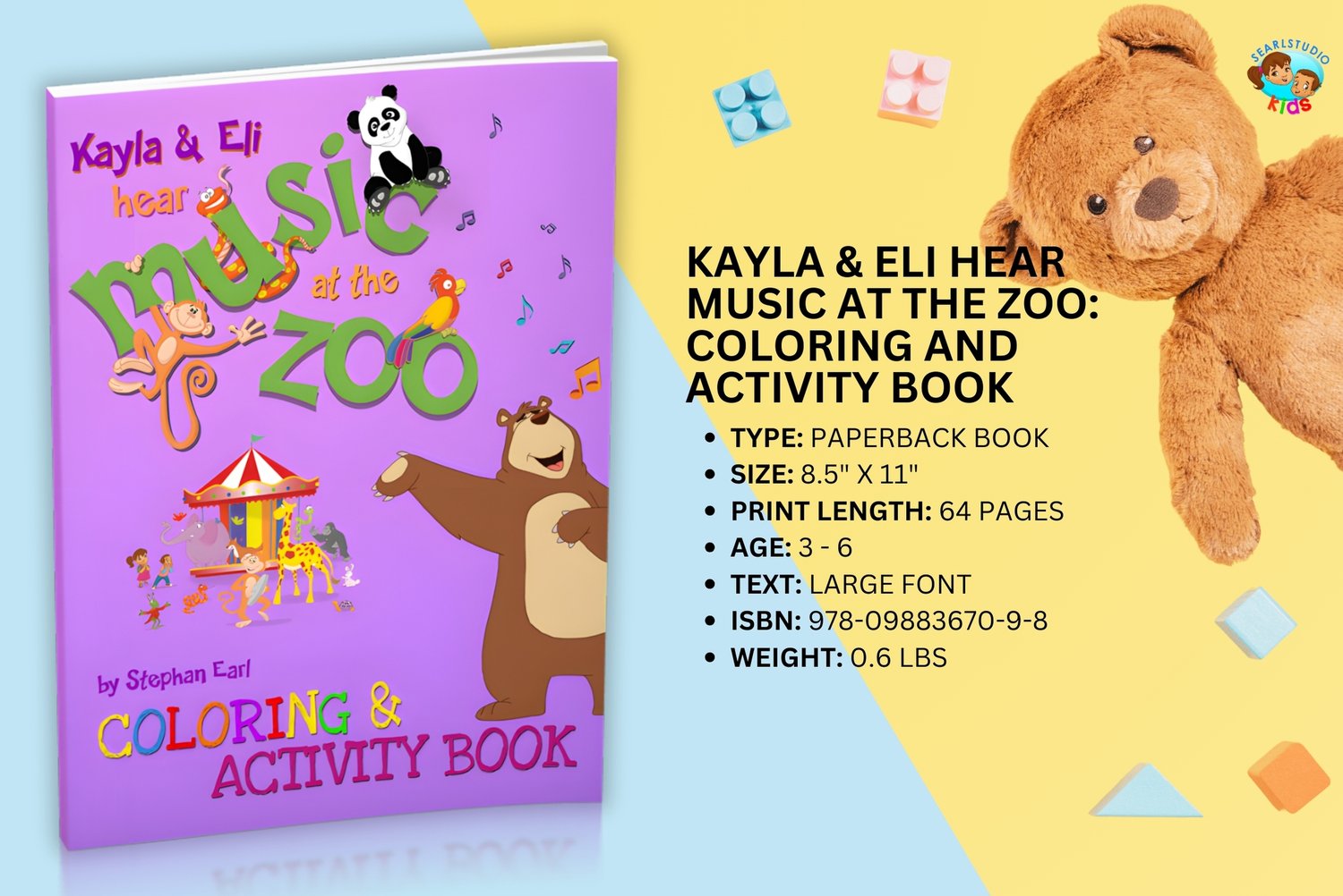 It's fun time again with "Kayla & Eli Hear Music at the Zoo: Coloring and Activity Book". Based on the soon to be released beautifully illustrated picture book "Kayla & Eli Hear Music at the Zoo" by Stephan Earl, this coloring and activity version features over 60 pages of music and zoo related coloring, puzzles and activities.