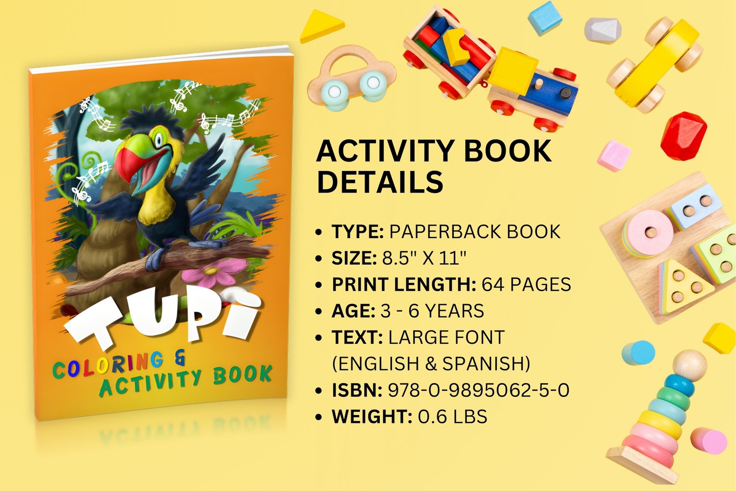Based on the beautifully illustrated board book "Tupi Finds His Tune" by Stephan Earl, this coloring and activity version features over 60 pages of fun music and rainforest related coloring, puzzles and activities. It's the perfect compliment to the original board book, and the perfect gift for any child who loves music.